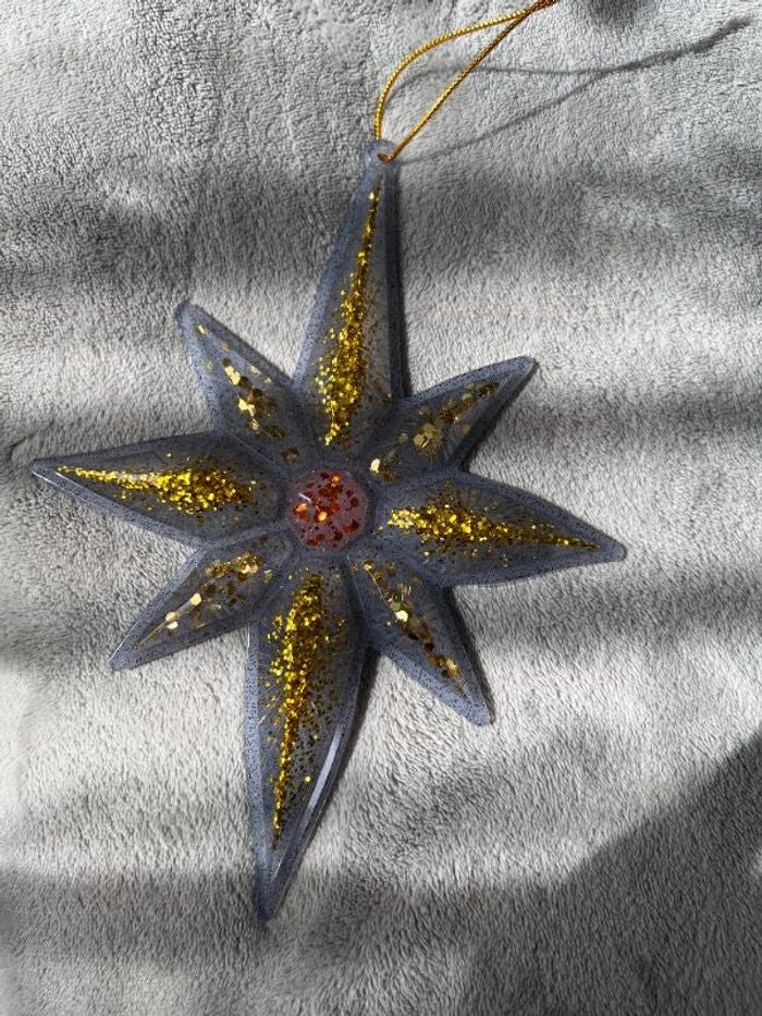 vends grande Etoile de noel en résine époxy couleur doré paillettes et noir