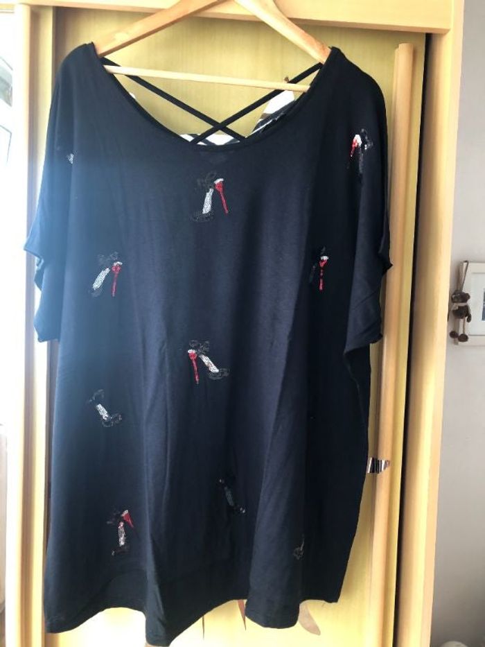 vends top noir avec motif chaussure taille XXL marque M et S mode très bon état