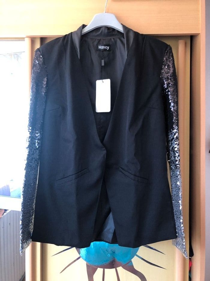 vends veste noir avec paillette sur les manches neuve jamais portée - taille unique
