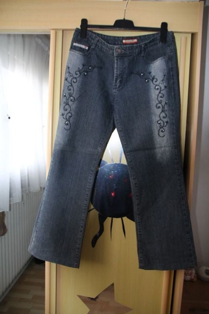 vends jean gris/noir - taille 42/44 - neuf - motif sur les cuisses