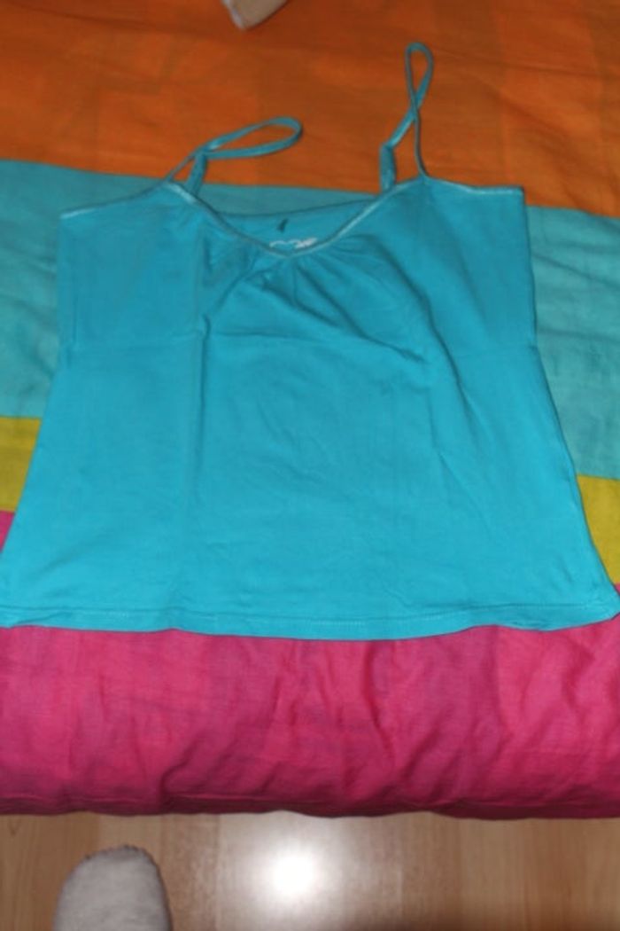vends débardeur bleu sans manche très peu porter taille L