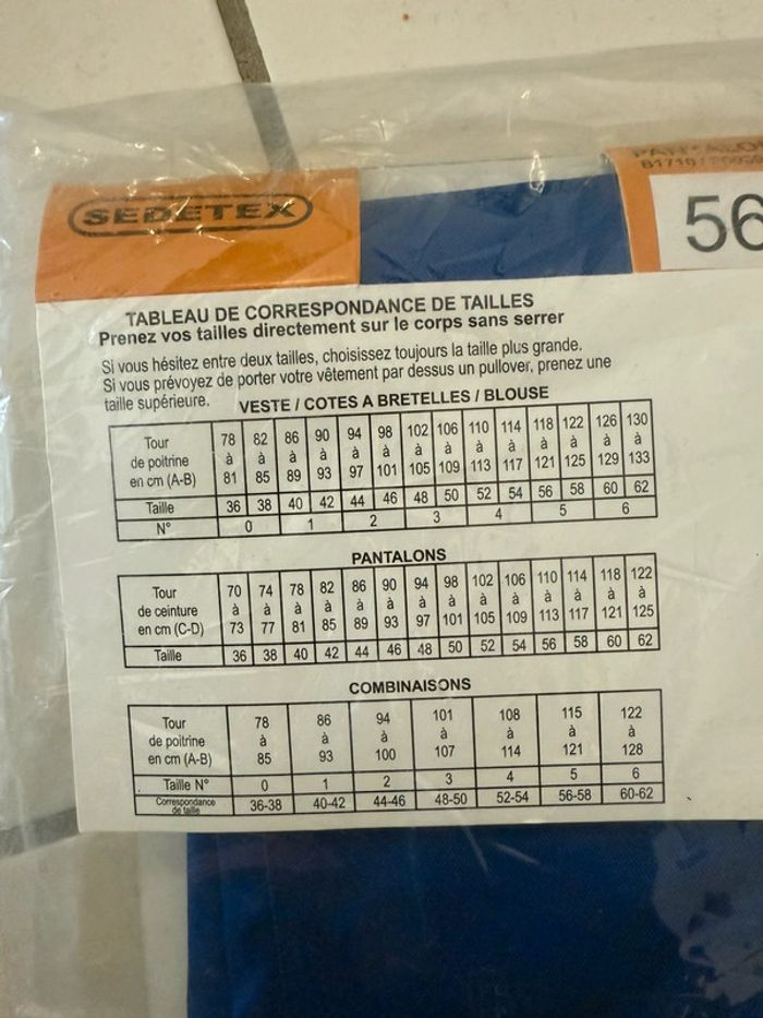 Pantalon 56 bleu de travail en Tergal neuf sedetex