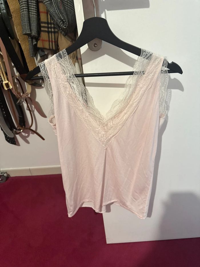 Débardeur dentelle rose poudré nafnaf s décolleté devant et derrière - photo numéro 1