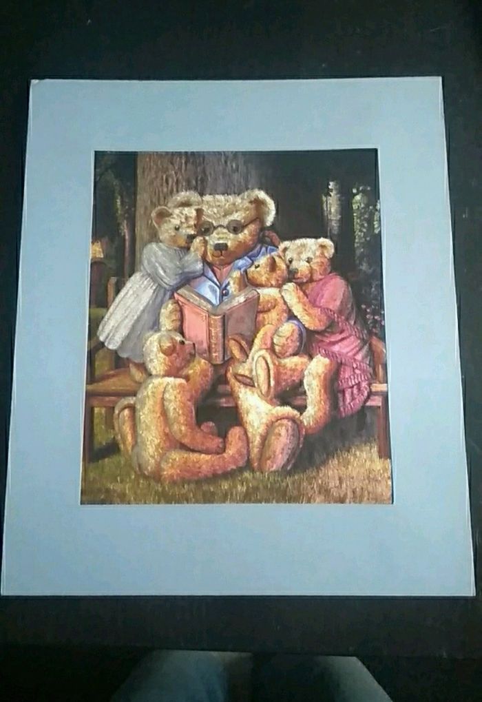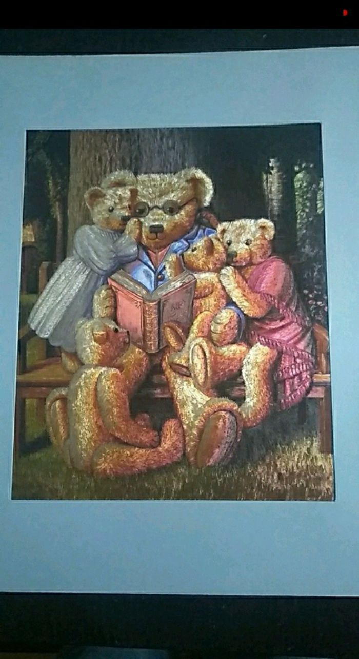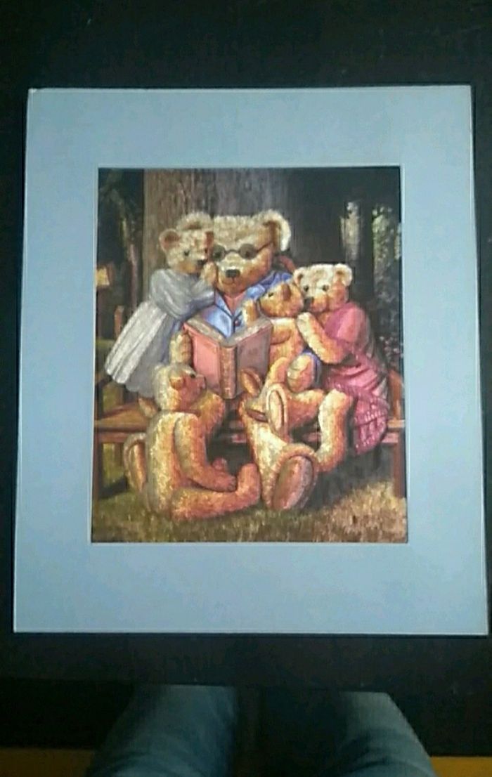 Décoration murale en carton Papa Ours lisant un livre à ses enfants ourson dimensions 30x36 cm très bon état juste légèrement cornée sur le coin haut voir photo