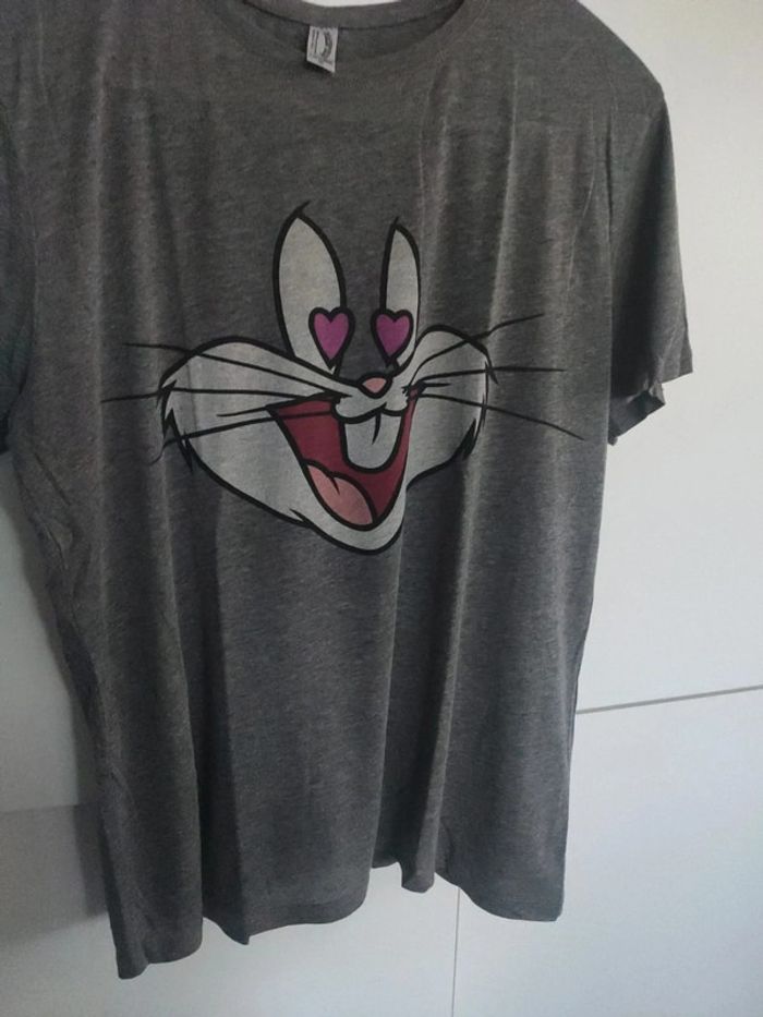 T shirt hyper doux, très fluide, très bon état, marque Undiz, taille M avec la tête de Bugs Bunny sur le tee shirt. Convient aussi bien pour rester à la maison, en tenue de nuit ou avec un jean. Gris chiné #vulariFemmesM38 #vulariUndiz