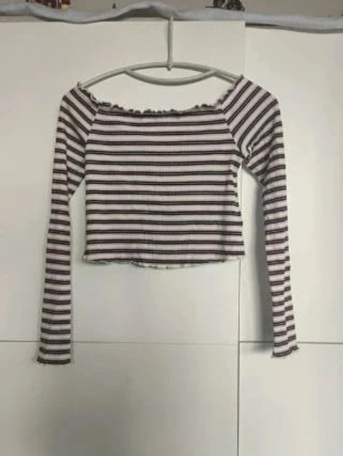H&M  T shirt top court rayé S - photo numéro 1