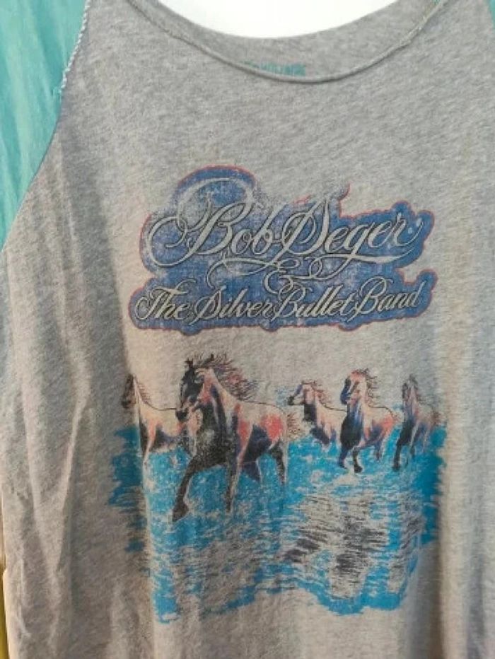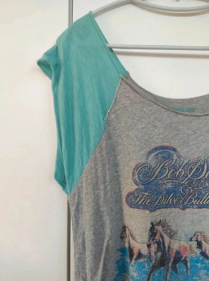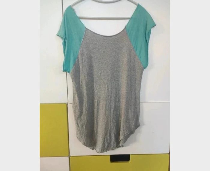 T-shirt juste lavé, jamais porté. Style usé comme si une partie de la manche avait été recousue. Base arrondie, Style coupé a cru. Modèle Bob. Taille M, 100 % coton. Acheter dans une boutique Zadig et Voltaire #vulariFemmesM38 #vulariZadig
