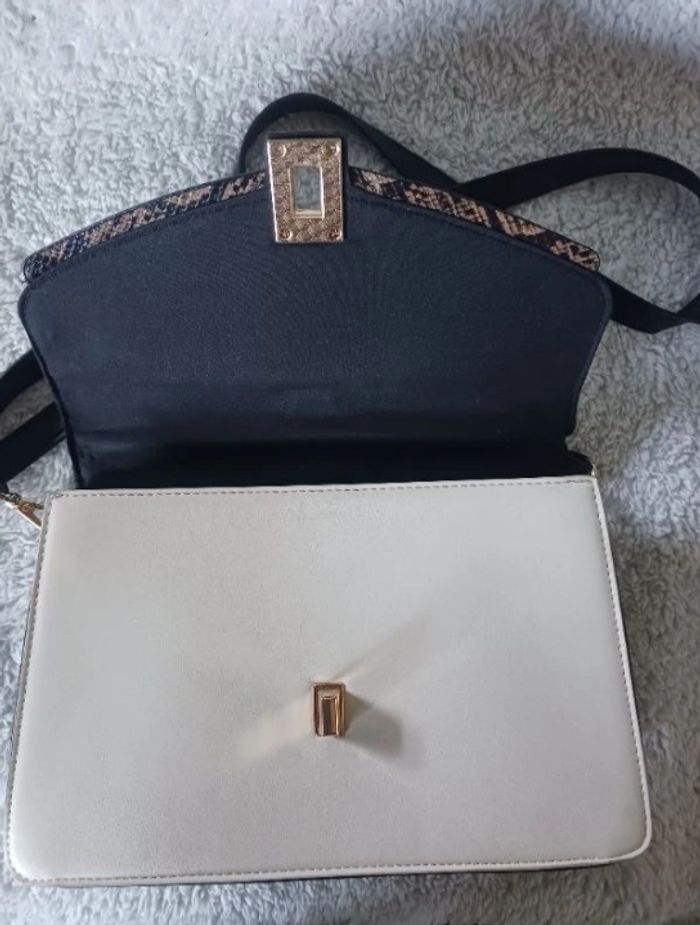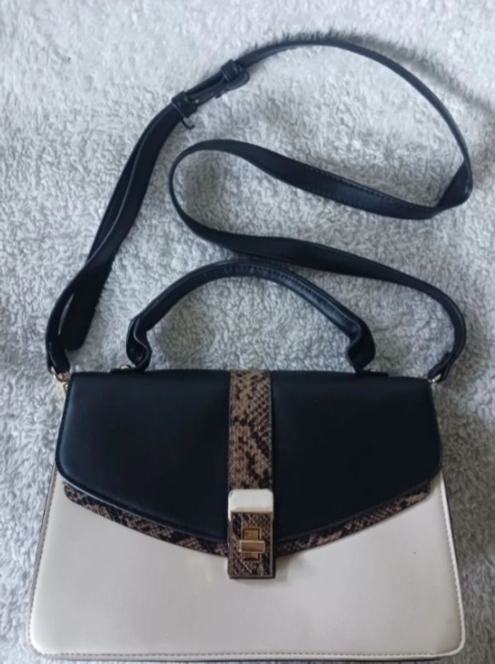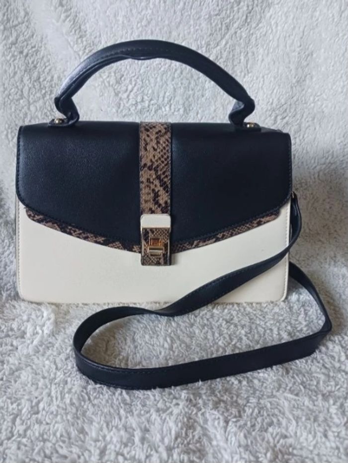 Sac à main cartable bicolore à imprimé python en synthétique.