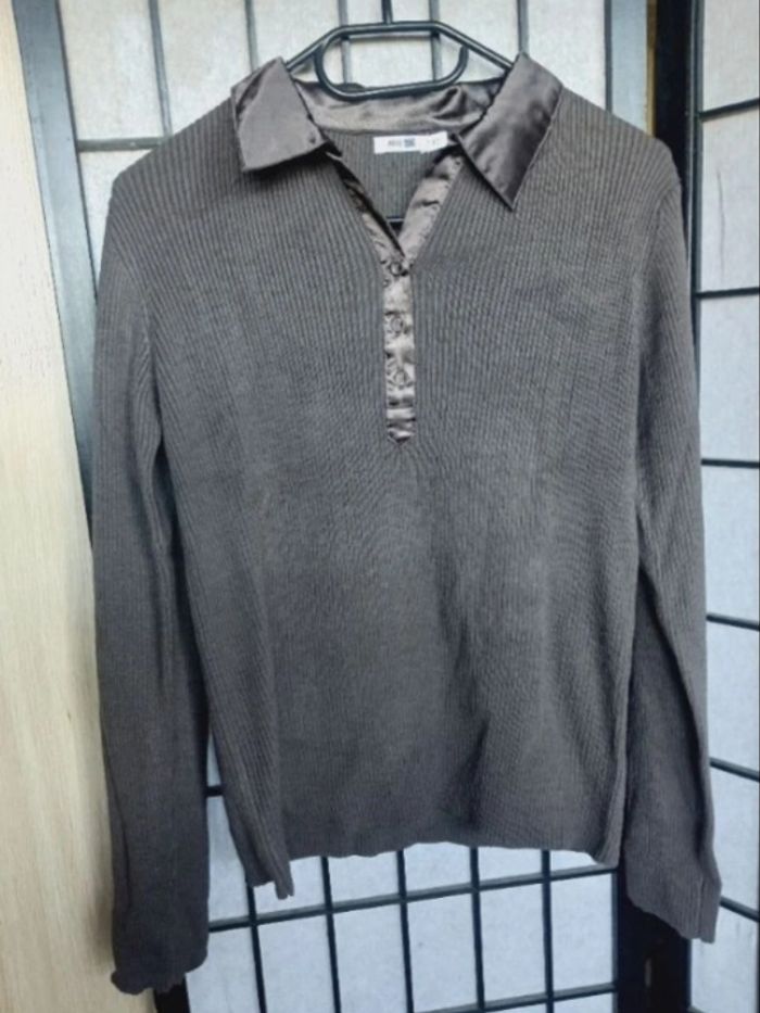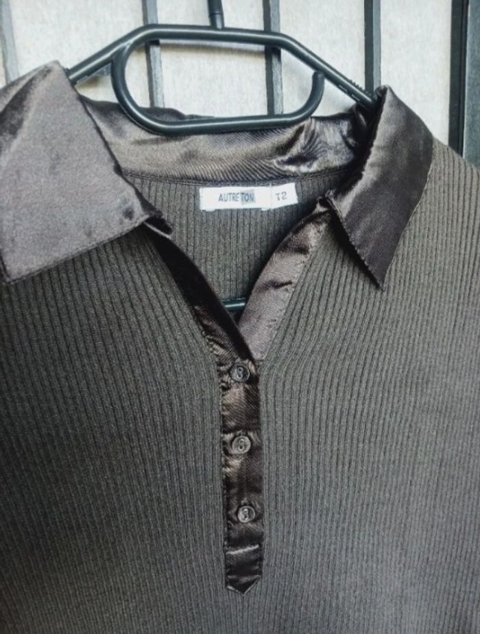 Pull marron avec col "style" satin Etiquette compo découpée En bon état général Photo du vêtement porté impossible