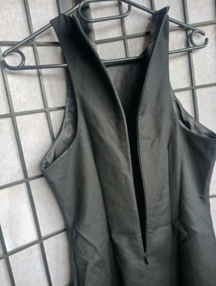 Robe sans manches, grande fermeture dans le dos. Descend jusqu'aux genoux. Etiquette compo découpée Photo du vêtement porté impossible