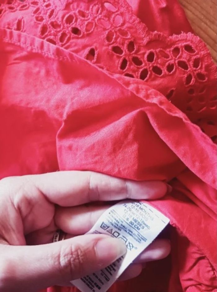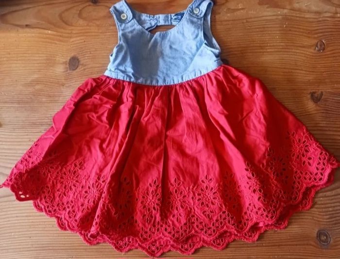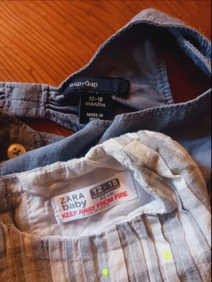 Lot de 2 robes fille 12/18 : - la blanche et grise : Zara Baby (82cm) Etiquette compo découpée - La grise et rouge : Baby Gap (80 cm) Les 2 en très bon état général