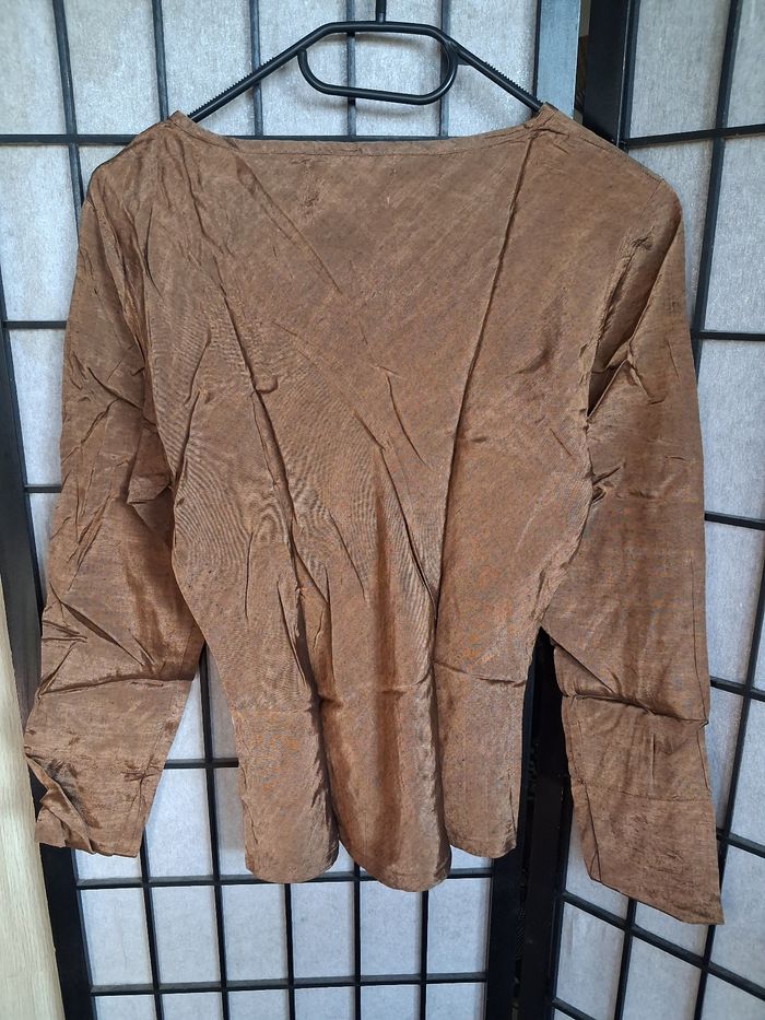 Blouse manches longues Couleur marron légèrement doré En bon état general Mensurations en photos Photos du vêtement porté impossible
