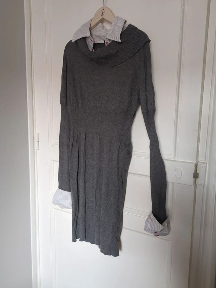 Robe cop copine gris pull grand col manches blanc rayé taille 3 - photo numéro 7