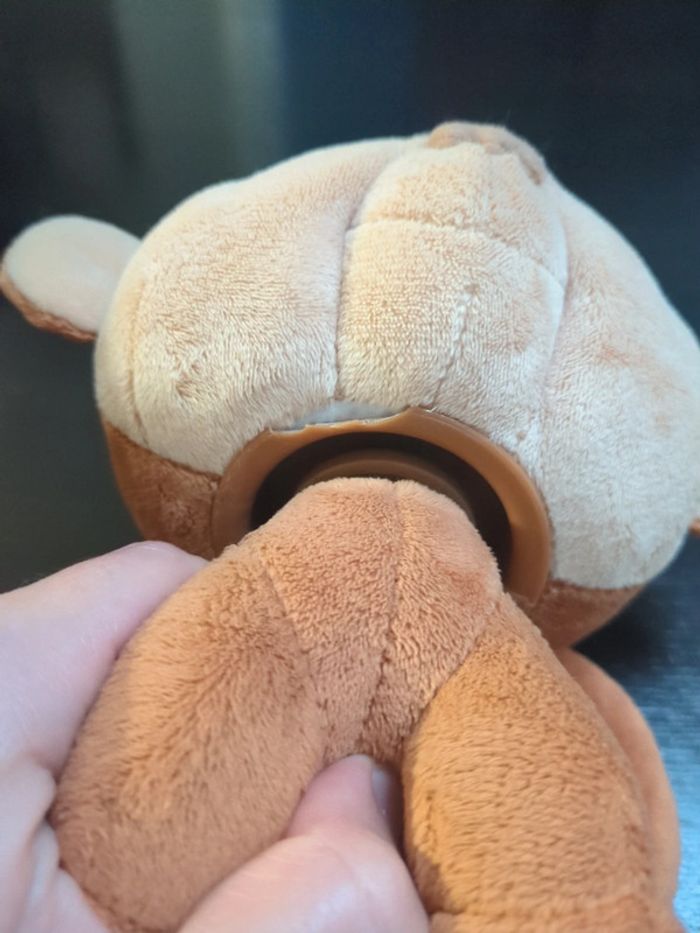 Lot de 3 peluches. Elles ont un peu servies mais restent en bon état général. La tête du singe est mobile. Le système en plastique a un petit défaut, voir photo, mais rien qui ne se voit car en dessous.un défaut sur l'oreille du lapin