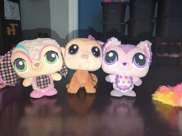 Lot 3 peluches pet shop singe lapin chat - photo numéro 1