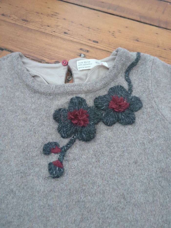 Robe Zara 8 ans laine gris beige broderie tricot - photo numéro 3