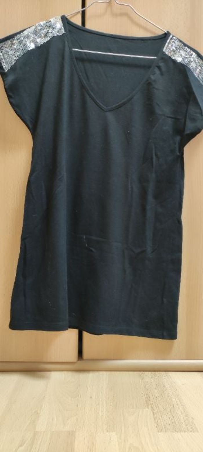 Tee-shirt noir strass