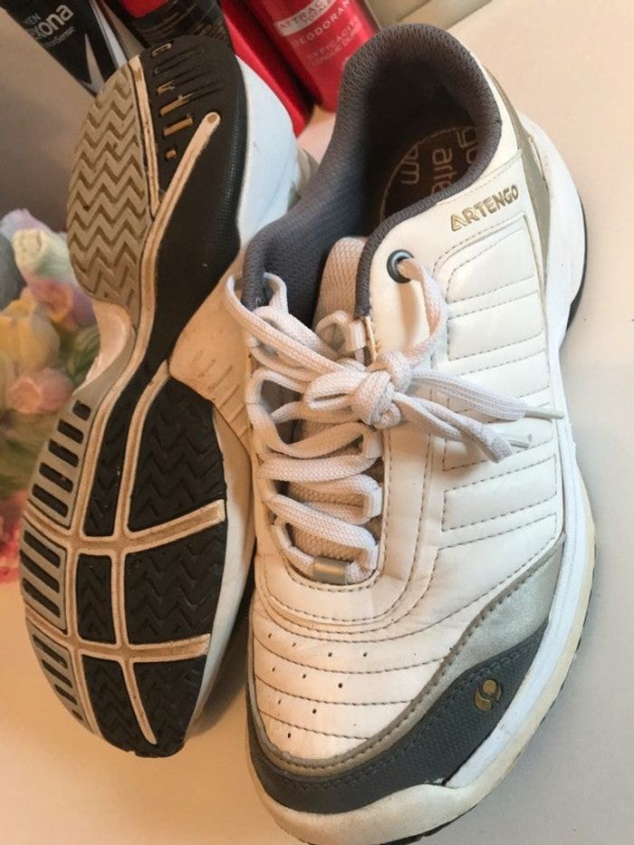 Basket artengo, taille 38 , quelques petites éraflures sur la semelle devant et derrière comme illustré dans les deux dernières photos, si non elle sont confortables et costaudes ✋ je vous invite à visiter mon dressing car je fais des prix sur les lots 😊 ⭐️maison non fumeurs et on a pas d’animaux 🌹N’hésitez pas à poser vos questions