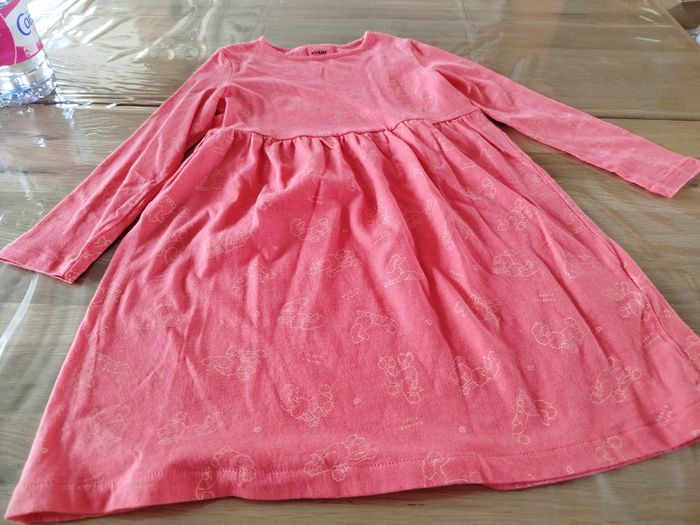 Robe Kiabi de couleur rose manche longue motif chien taille 6 ans