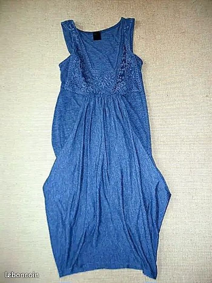 Belle ROBE Mi longue à Bretelles T: 36 GRISE bleutée STYLE: Robe BOULE !! ORIGINAL !! Bretelles et Décolletée AJOURES, Plissée dans le dos à la taille PARFAIT ETAT !!