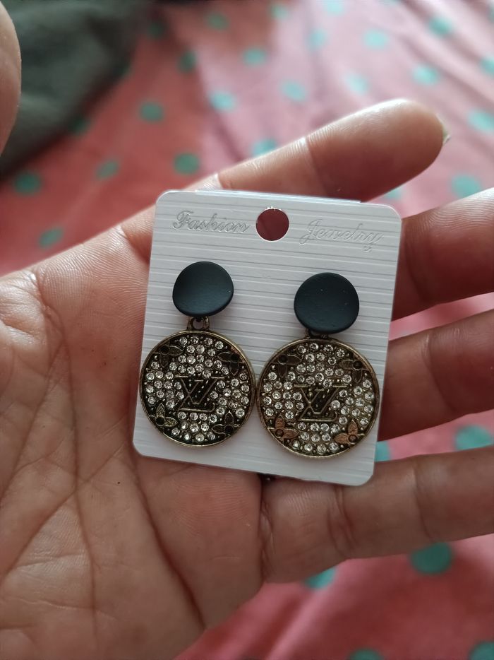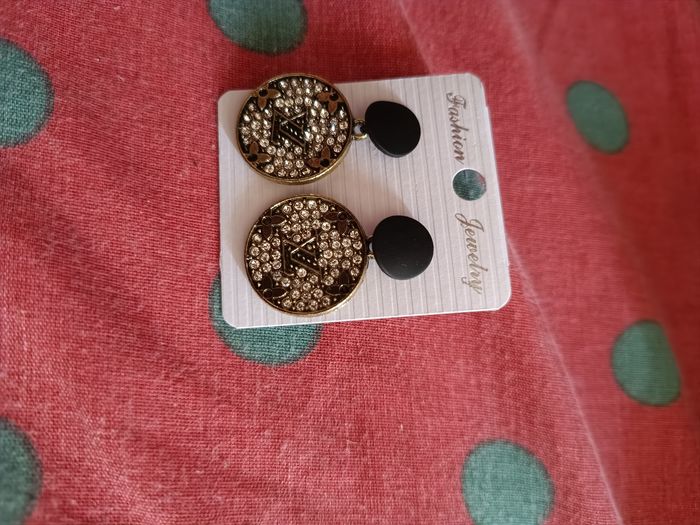 Boucle d'oreille très legere noir, doré et strass argenté en acier inoxydable