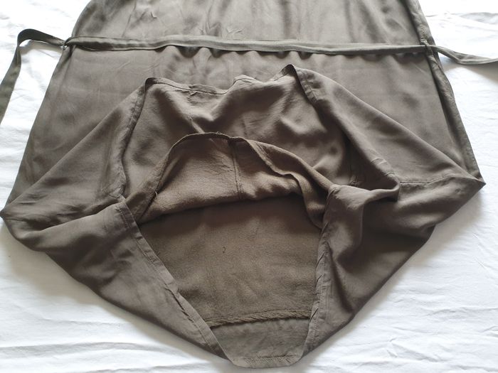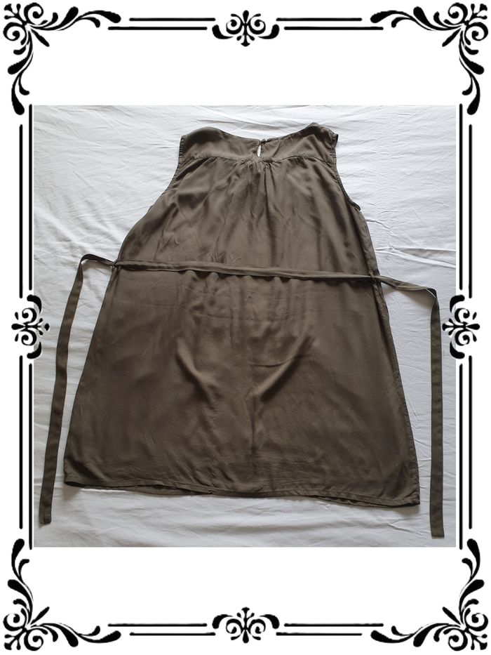 Robe taille 46. Robe sans manches avec doublure kaki. Tissu non extensible. 100 % viscose. Largeur sous les bras : 51 cm Largeur à la taille : 60 cm Hauteur du décolleté à partir de l’encolure : 13 cm Longueur totale : 86 cm En très bon état. Tex. 3€. #vero38110vetementsfemme46
