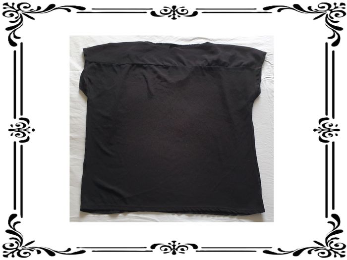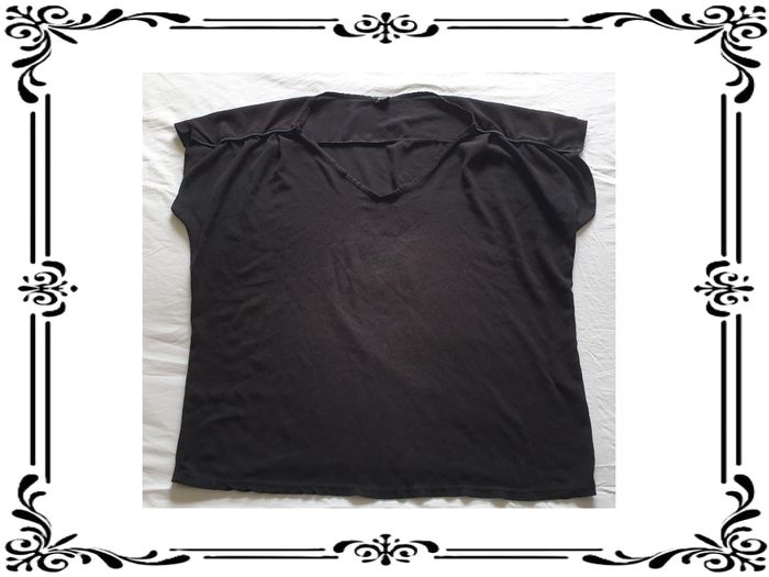 Blouse taille 46. Blouse fluide noire. Tissu extensible sur 7 cm. Largeur sous les bras : 63 cm Largeur à la taille : 56 cm Hauteur du décolleté à partir de l’encolure : 21 cm Longueur totale : 63 cm En très bon état. Influx. 3€. #vero38110vetementsfemme46