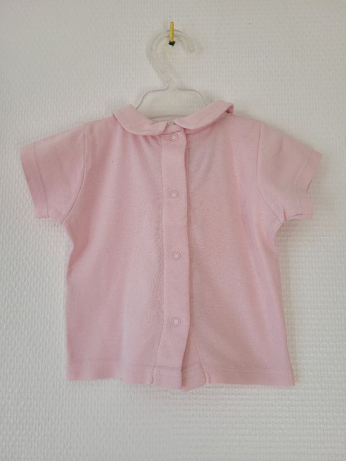 T-shirt rose pâle de marque Petit Bateau taille 6 mois Petit col Claudine Broderie ton sur ton sur le devant Manches courtes S'ouvre entièrement à l'arrière 100% coton En parfait état, peu porté