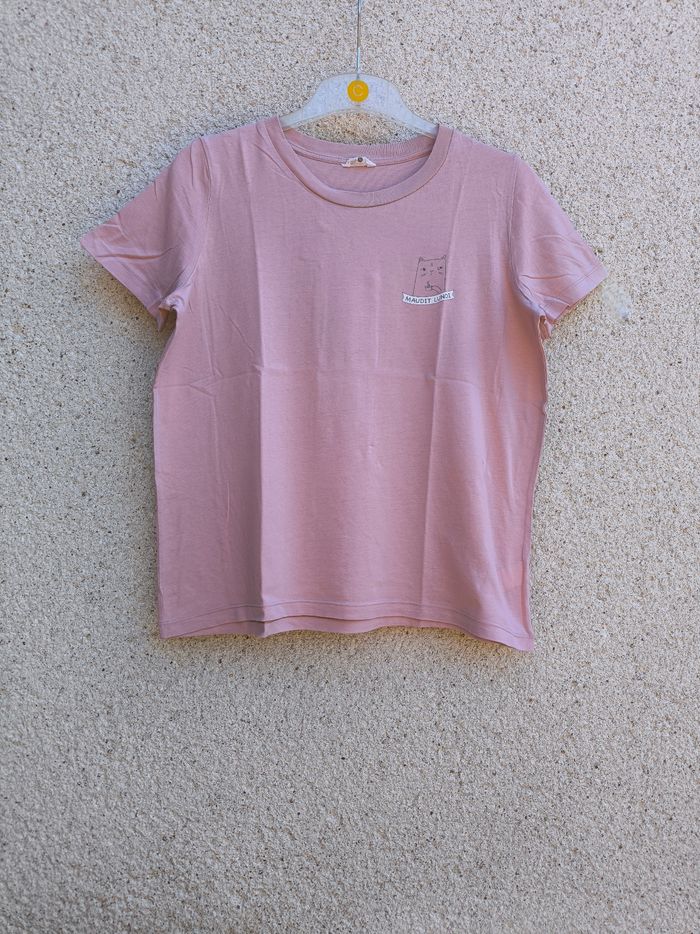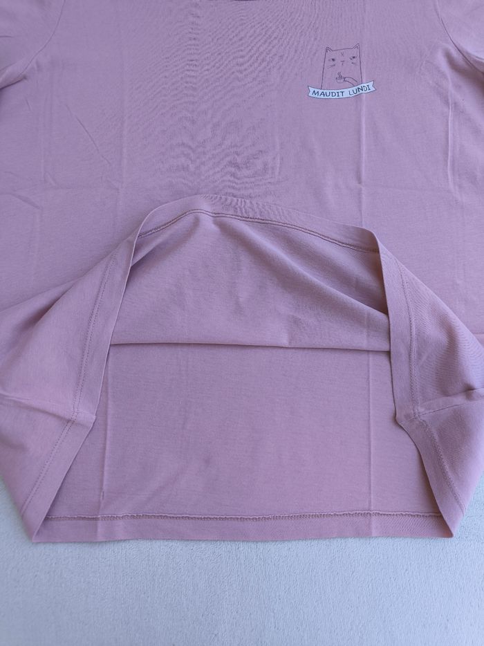 T-shirt à manches courtes Marque Bizzbee Taille M, 38 • Coloris rose pâle • Imprimé chat et inscription "Maudit lundi" • Col rond • Coton fin Largeur épaule à épaule non étirée : 37 cm Largeur épaule à épaule étirée au maximum : 54 cm Largeur aisselle à aisselle non étirée : 52 cm Largeur aisselle à aisselle étirée au maximum : 75 cm Longueur totale : 59 cm Longueur aisselle : 40 cm Peu porté, en très bon état #evelyne_taille_38