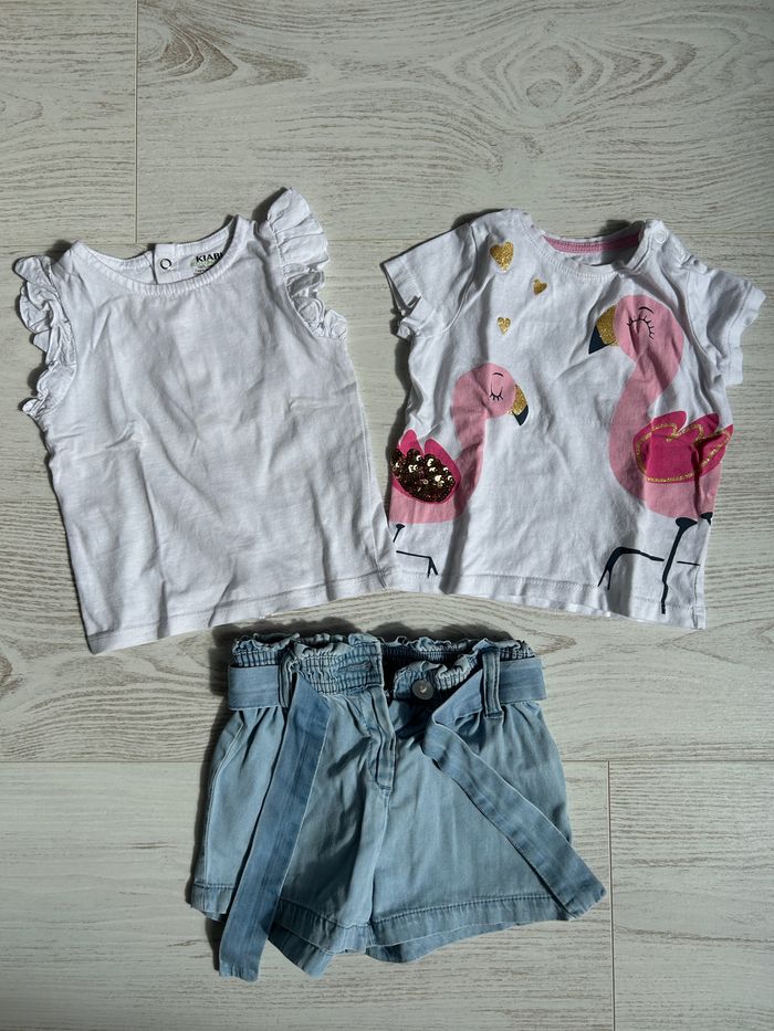 Lot 2 t-shirts et un short taille 9 mois - photo numéro 1