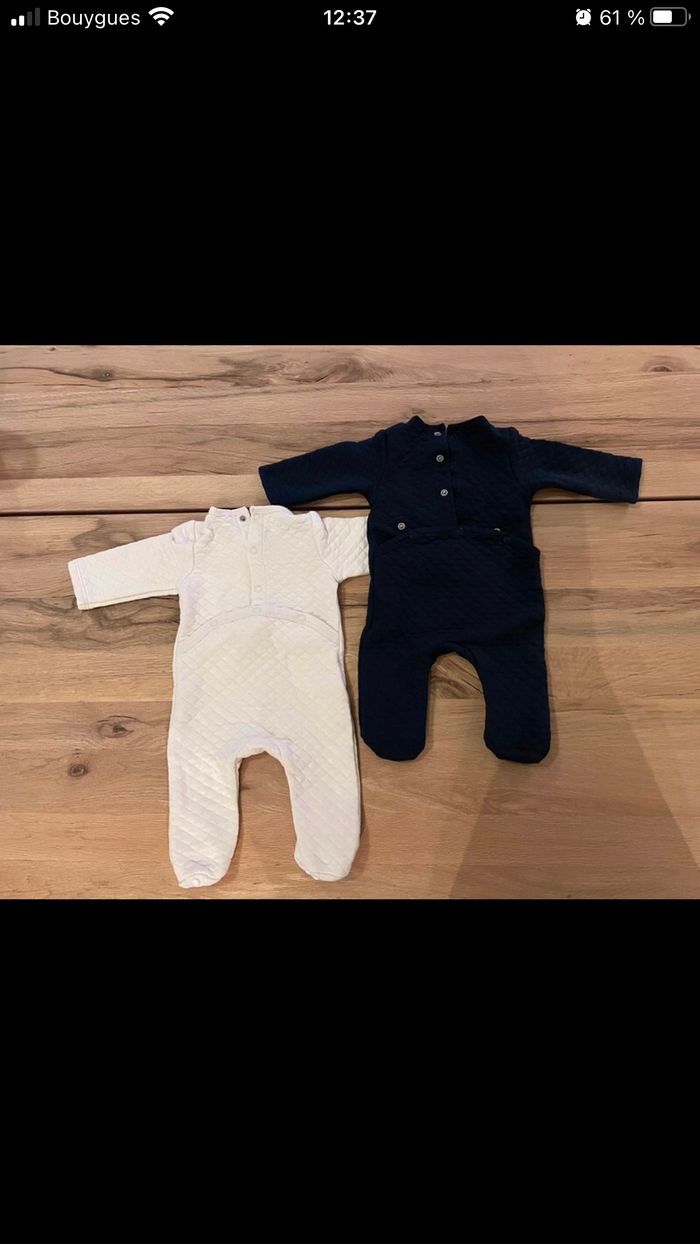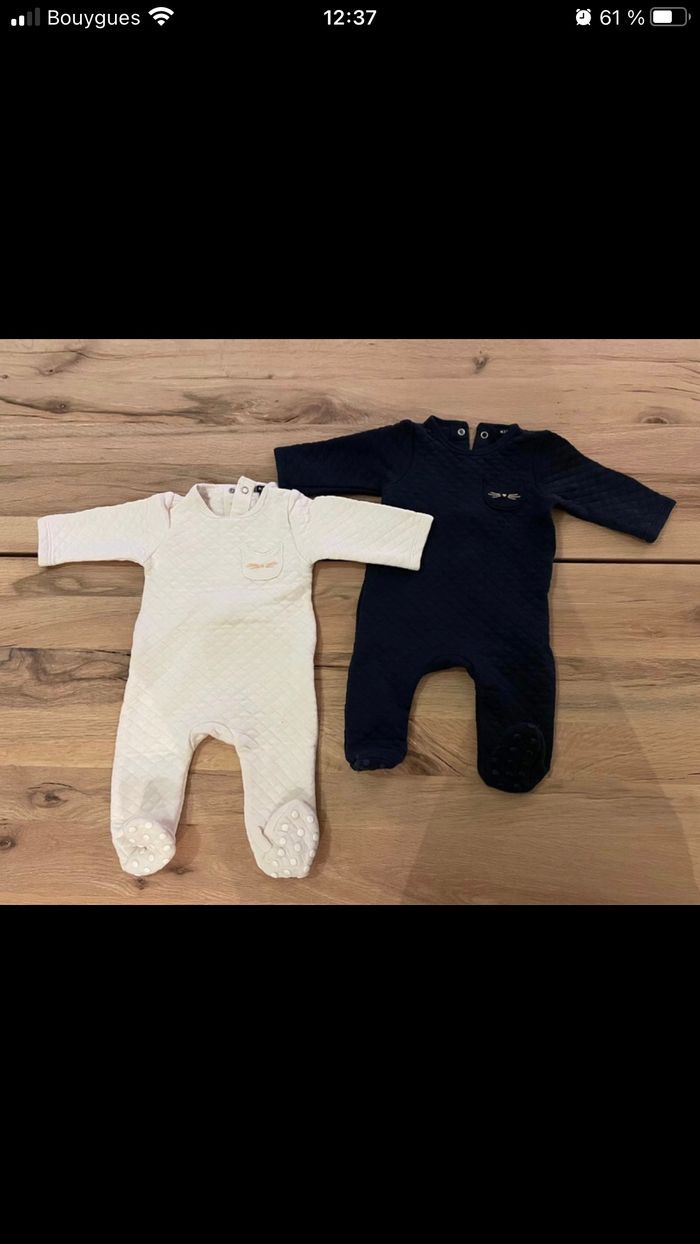 2 pyjamas de 3 mois (56-62 cm) en blanc et bleu marine Excellent état .
