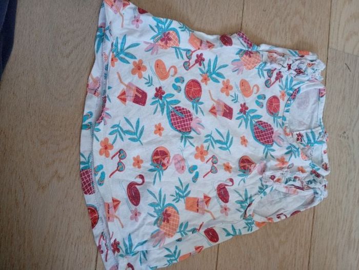Tee-shirt manches courtes/ tunique en bon état légèrement décousu voir photo de marque tqf baby et de taille 12 mois