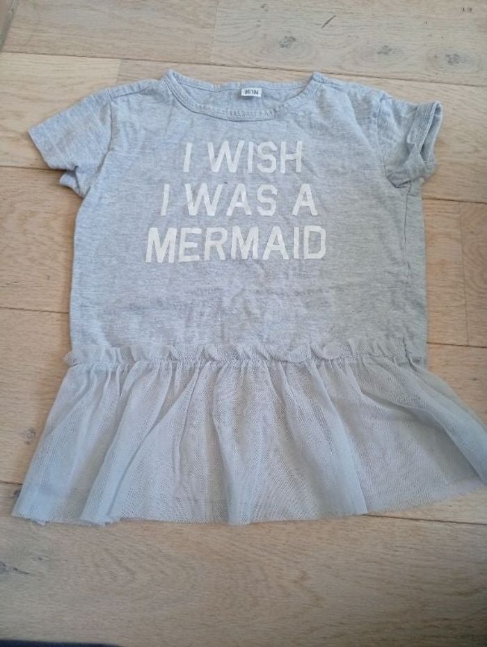Tee-shirt manches courtes/ tunique en bon état légèrement bouloché voir photo de marque inconnue et de taille 98/104 cm