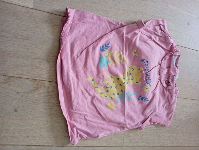 Tee-shirt manches courtes en bon état l'impression légèrement craquelée voir photo de marque Tex baby et de taille 18 mois