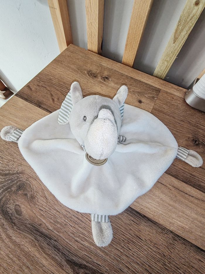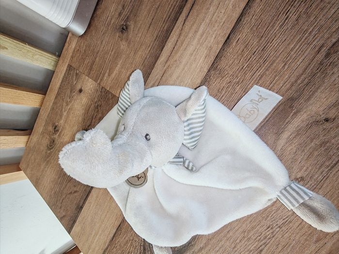 Doudou plat éléphant gris blanc rayé BABY NAT Tbe Étiquette marque présente 9.90 euros Envoi en relais