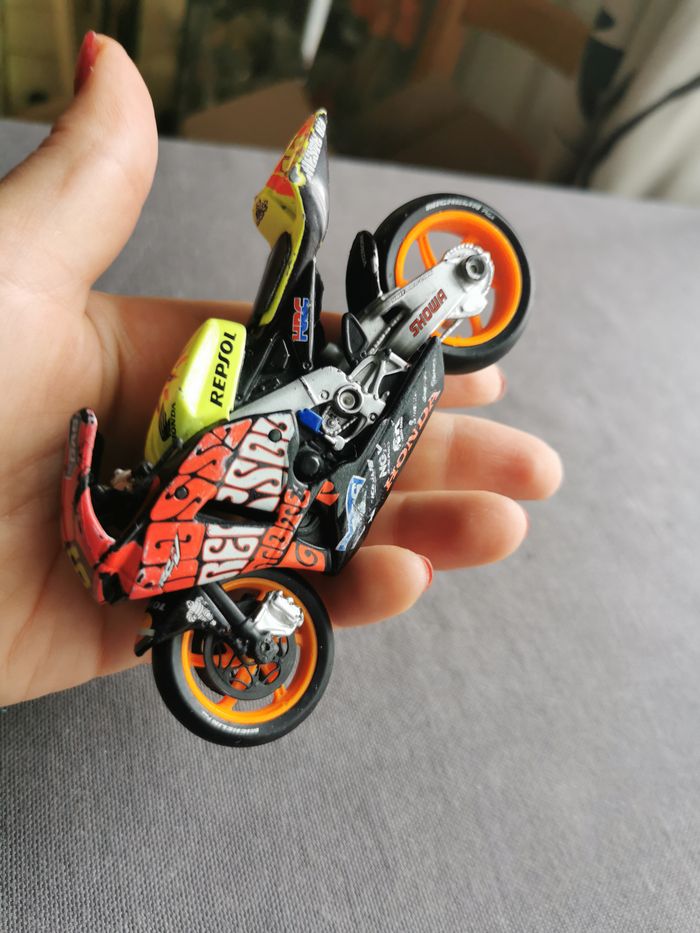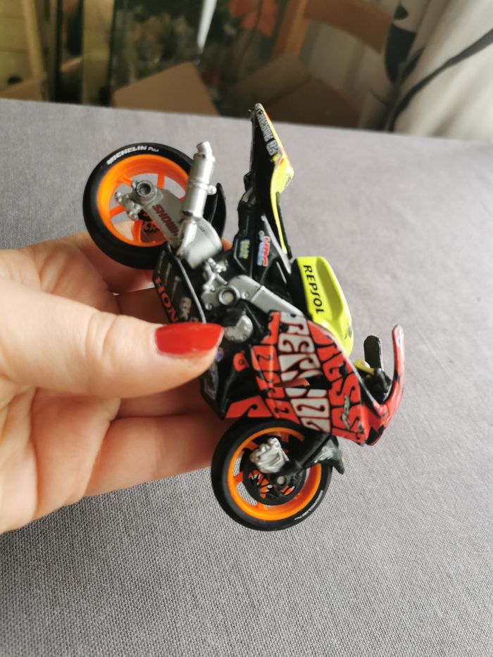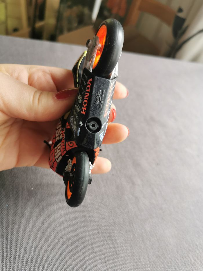 Lot de 2 moto jouets Maisto Ducati et Honda, en plastique et métal, en très bon état général. Jolies miniatures de collection, le lot n'est pas dissociable, taille 11,5x2x5,5 cm et 11x6x3,5 cm, poids 107g.
