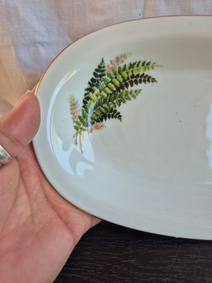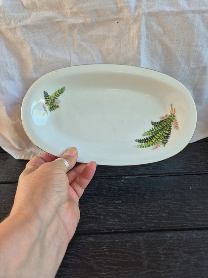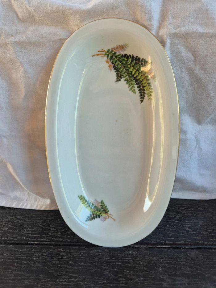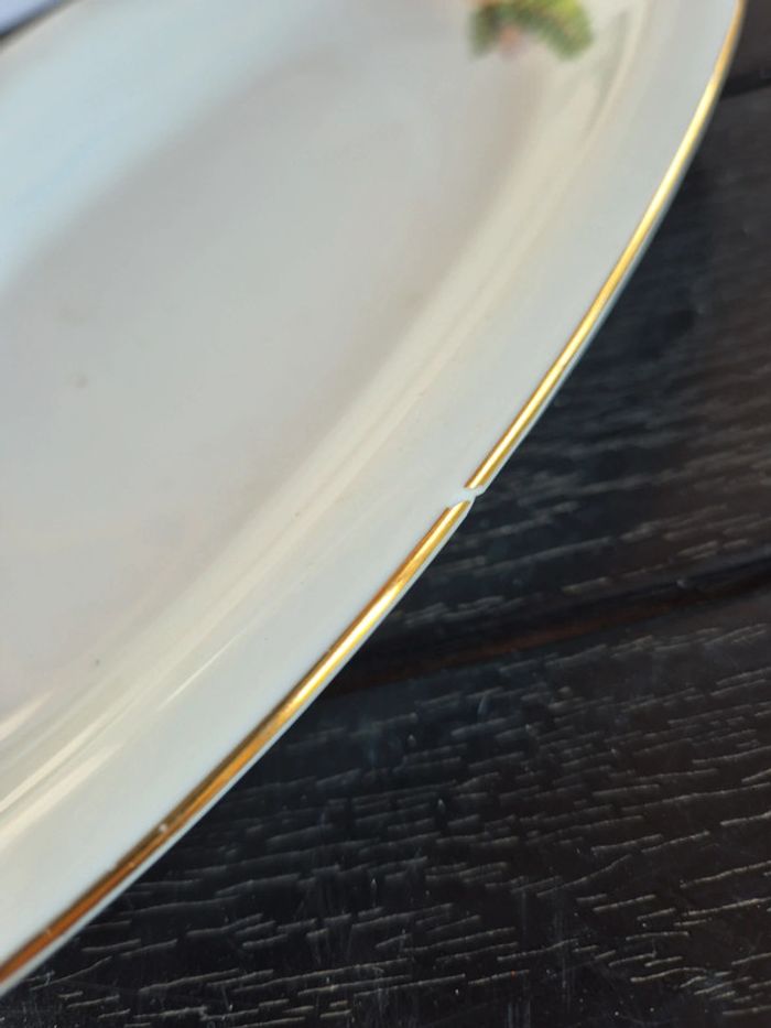⬇️mes autres annonces d'article de maison, décoration👉 #cg89déco un plat de service avec feuillage et tour doré. un petit défaut sur un bord (voir photo). bon état #plat ##porcelaine #baviere