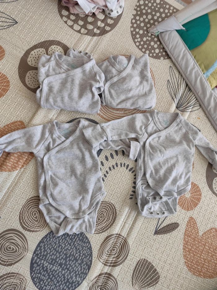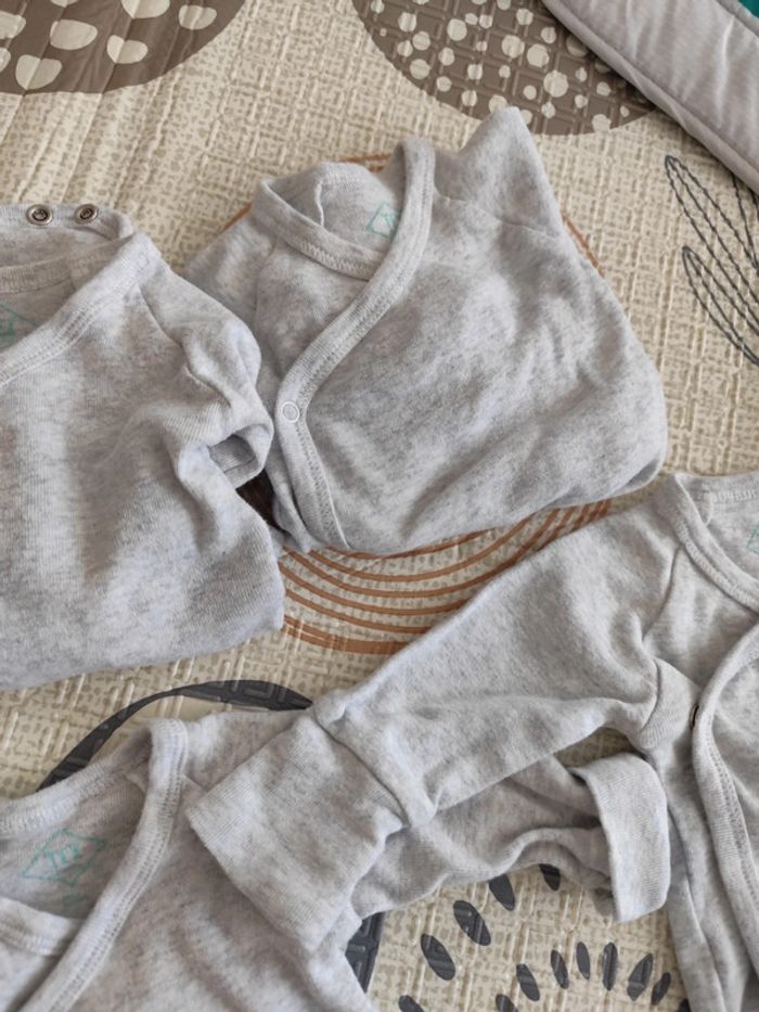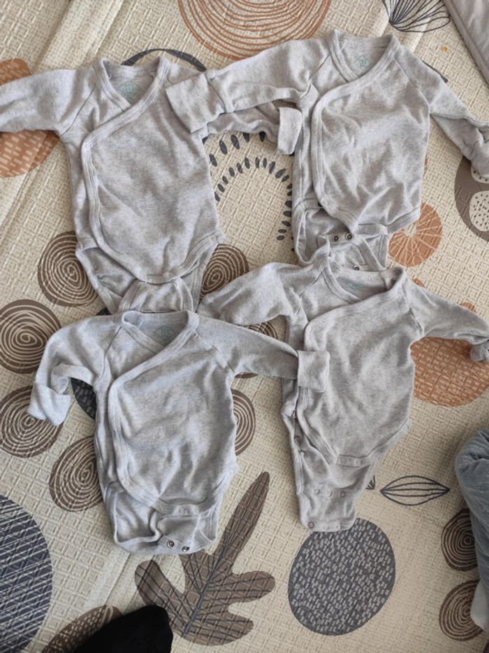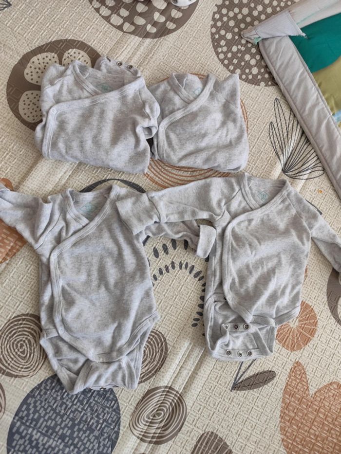 Portés une fois ou deux max chacuns. Lavés pour la vente lessive bébé 30° Idéal valise de maternité ! Car évolutifs donc conviendront à bébé quelque soit sa morphologie et son poids et taille de naissance 🥰 Coton bio Les manches ainsi que les pressions en bas sont réglables pour s'ajuster parfaitement ! Convient pour 1 mois et 3 mois