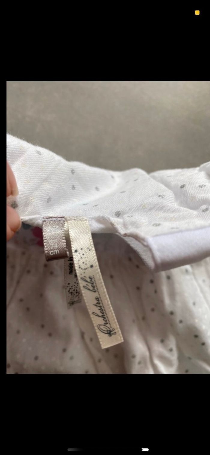 Toute neuve, juste lavé. Belle robe pour cérémonie. N’hésitez pas à me suivre car encore beaucoup de vêtements fille, des chaussures en cuir, des chaussons… (du 1 mois au 8 ans), des vêtements garçon (du 1 au 6 mois pour le moment ). Maison non-fumeurs et sans animaux même si je les adore. Il n'y aura pas de poils ou d'odeur désagréable. Vous recherchez quelques choses, demandez moi. Je réponds très rapidement. Bon shopping 😊