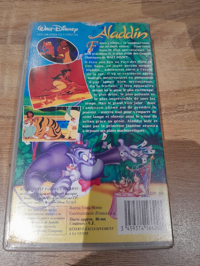 VHS walt disney grand classique Aladdin. Boîtier un peu abîmé voir photo. D'autres VHS de dispo dans mon dressing n'hésitez pas à jeter un coup d'œil ou à me demander