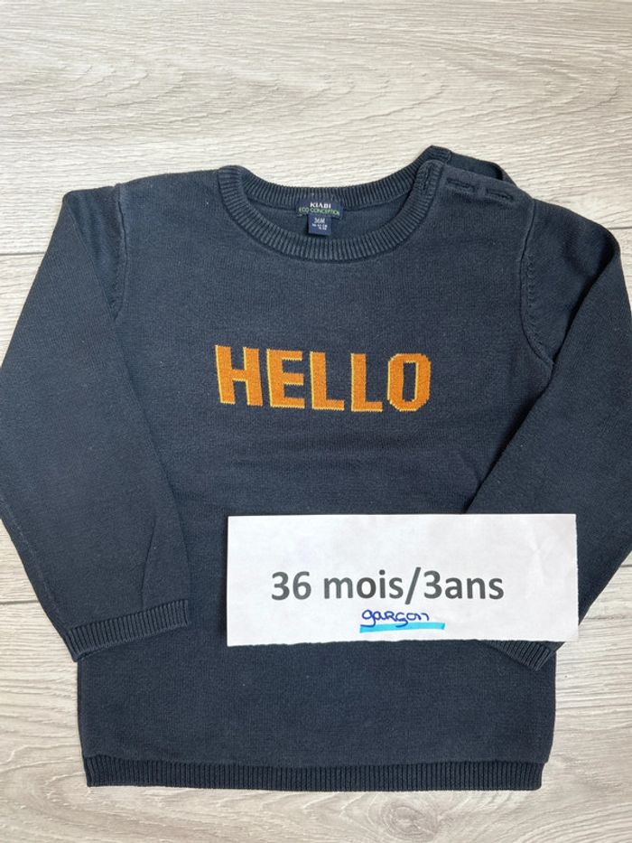 Pull bleu marine avec écriture hello couleur camel Taille 36mois / 3 ans #ludivine76116garcon3ans