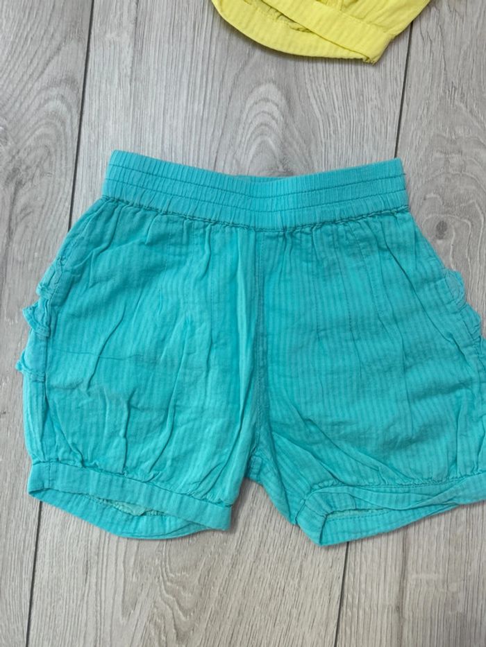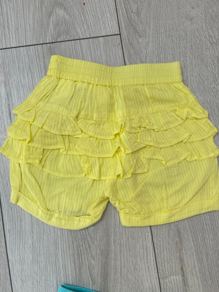 Short neuf juste lavé Avec froufrou sur le derrière 1 bleu turquoise et 1 jaune 12 mois taille élastique #ludivine76116bebe12mois