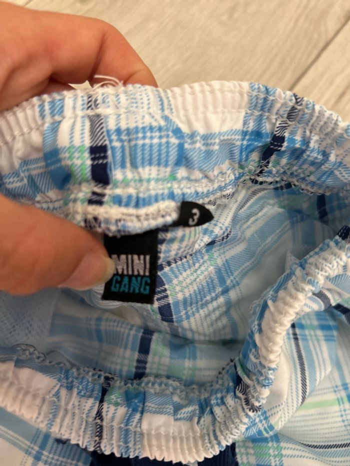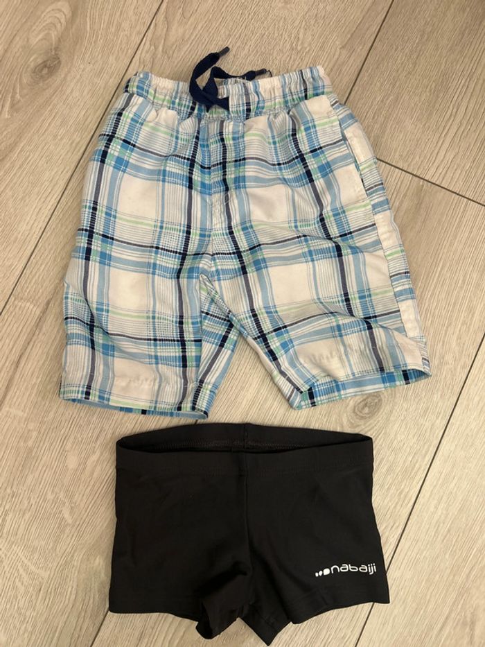Lot de 2 maillot de bain Bermuda de plage piscine Blanc à rayure bleu Beach party Petite tache ( voir photo) Boxer nabaiji ( étiquette coupe ) #ludivine76116garcon3ans
