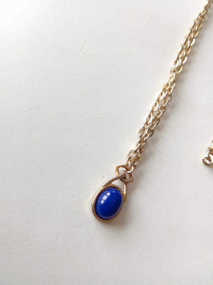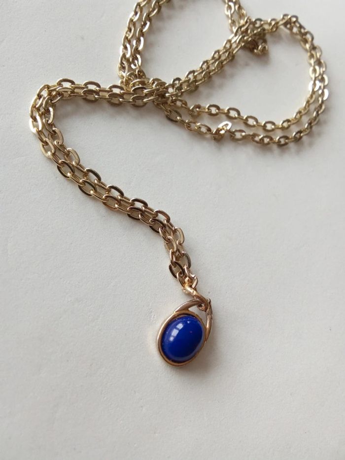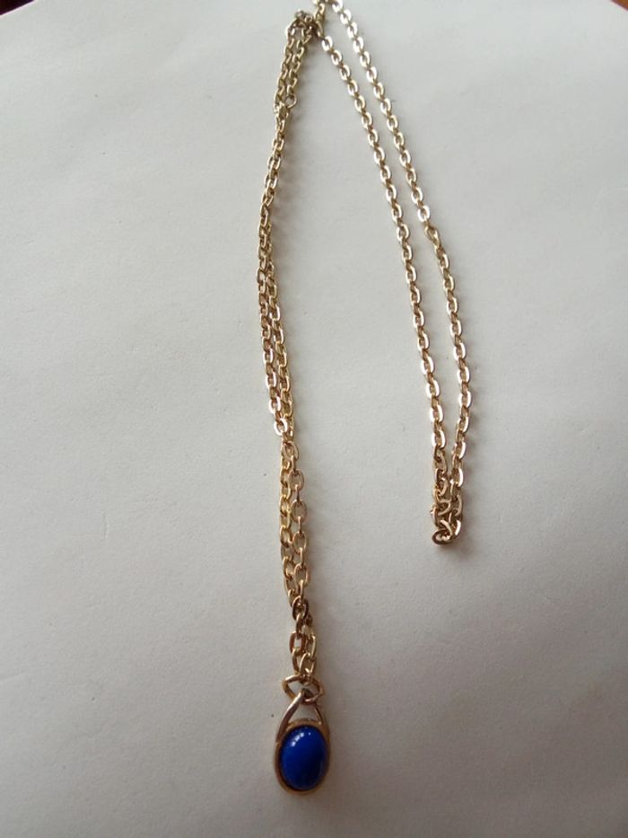 Collier doré avec perle bleue Assez long #collier #bijou #collar #femme #woman #mulher #mujer #original #sexy #bleu #perle #simple #elegant #chic #long #dore #golden #blue #azul #dorado #avecdecollete #sencillo #dafnezbijou #dafnezfemme