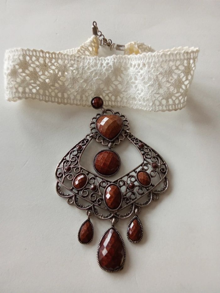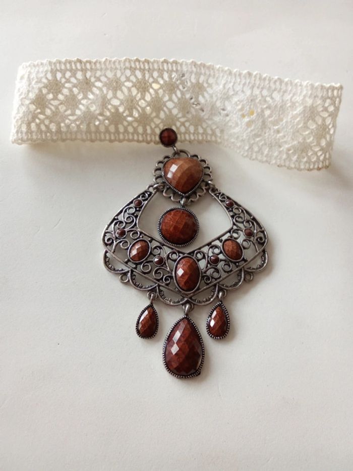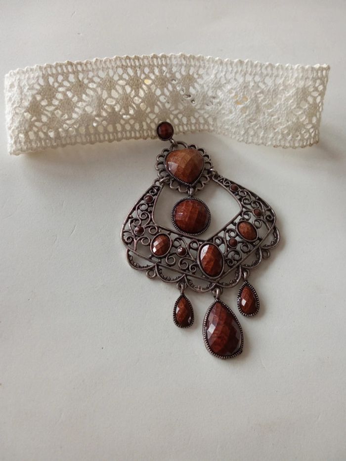 Collier ras de cou dentelle + gros pendentif - fait main #chic #elegant #renaissance #goth #gothique #faussespierres #dentelle #encaje #rasdecou #antiguo #collier #bijou #collar #femme #woman #mulher #mujer #original #sexy #dafnezbijou #dafnezfemme