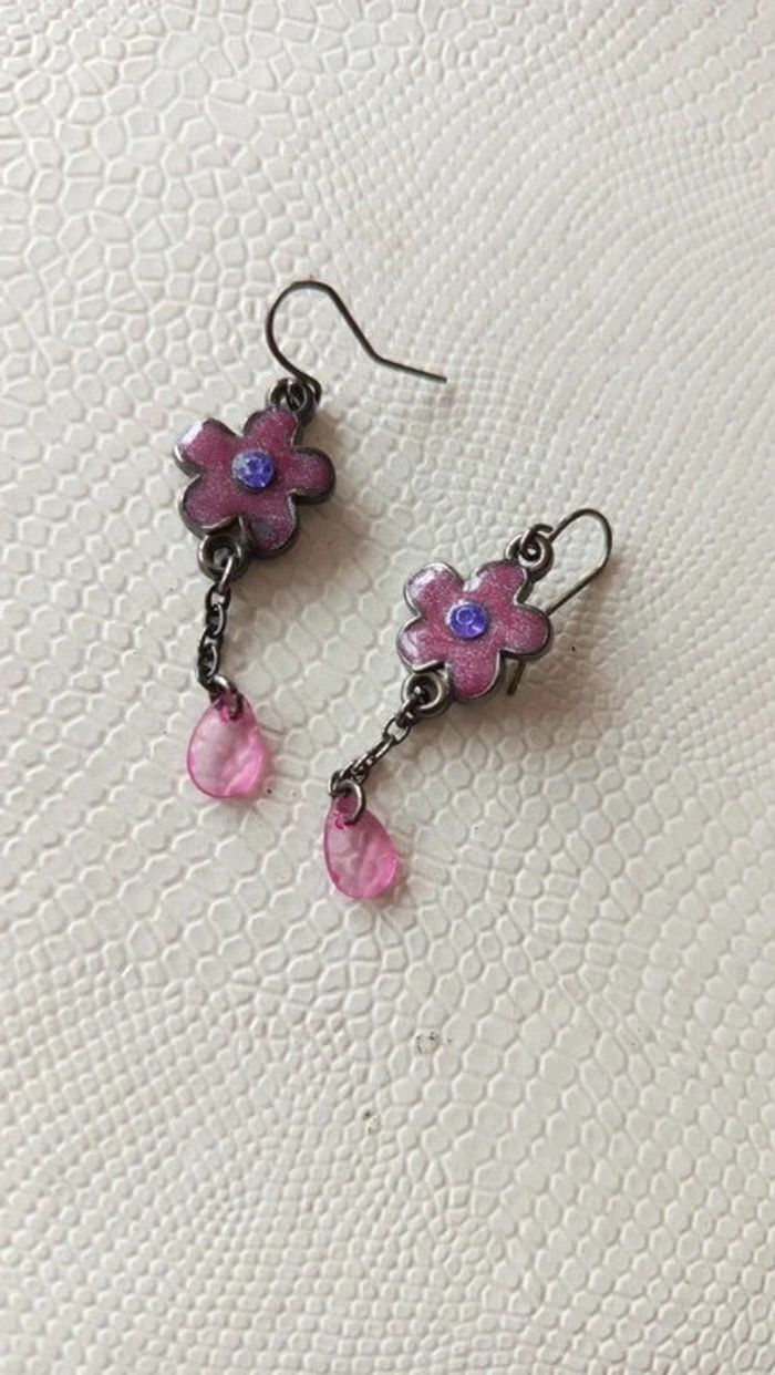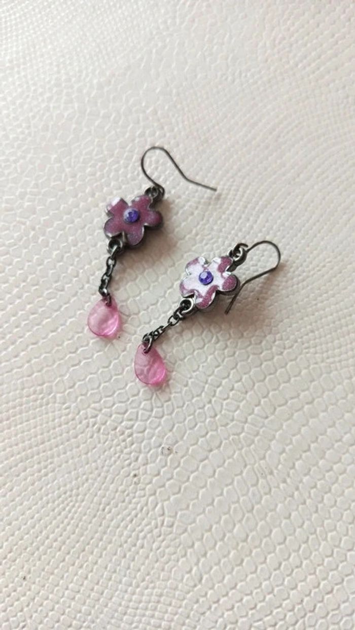 Boucles d'oreilles longues fleurs #boucles #bouclesdoreilles #pendantes #longues #pendientes #aretes #bijou #joyeria #bisuteria #earrings #fleur #flower #flor #primavera #printanier #ete #verano #summer #teen #ado #mujer #woman #purple #violet #morado #purpura #leger #light #dafnezbijou #dafnezfemme #dafnezado