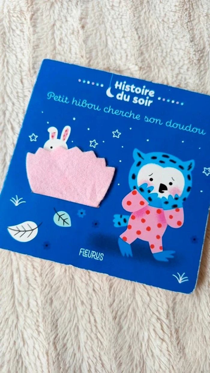 Livre bebe avec flaps en feutrine Petit hibou cherche son doudou La petite histoire du soir 1 à 3 ans Couverture légèrement abîmée sinon nickel #livre #bebe #doudou #petithiboucherchesondoudou #histoiredusoir #enfant #unan #deuxans #troisans #flap #livreaflaps #feutrine #fleurus #celineperson #animaux #hibou #histoire #soir #cartonné #dafnezbebe #dafnezenfant #dafnezlivre