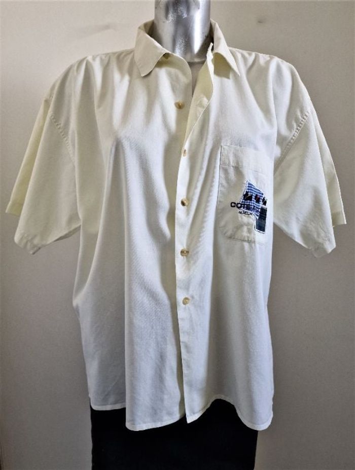 ✅ Chemisier / Blouse Vintage 90' couleur jaune pâle - Côte à Côte - TBE - Taille se rapprochant du 46 ✔ col chemise - manches courtes ✔ fermeture boutonnée ✔ 1 poche poitrine avec broderie logo ✔ 100 % coton - longueur 69 cm - largeur épaule 54 cm - sous aisselle 59 cm ✔ envoi rapide et soigné - remise sur lot