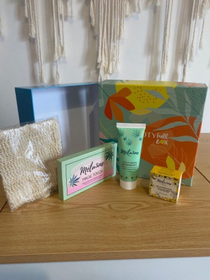 Neuf 1 pochette rangement solide 2en 1 (fonction gant de toilette aussi) 1 carré démaquillant réutilisable 14*7cm 1 gommage visage pain d’épice et chanvre 1 gel douche solide chanvre et coco
