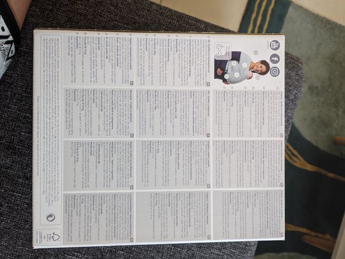 Écharpe de portage neuves jamais déballée car reçue en double dans la liste de naissance. Prix neuve 75 euros Le Tricot-slen est une longue écharpe en 100% coton jersey permettant 6 manières de porter le bébé de la naissance jusqu’à environ 18 kg : en berceau, en kangourou, assis, .... Le dos et la tête du bébé sont parfaitement soutenus. Très confortable : le poids du bébé est idéalement réparti Caractéristiques : Écharpe de portage tricotée extensible De 0 à 36 mois (3,5 kg – 15 kg) Multi-positions : ventre, hanche et dos Facile à nouer et à installer Position ergonomique en M et soutien optimal du dos de bébé 100% coton biologique certifié GOTS Fabriquée aux Pays-Bas